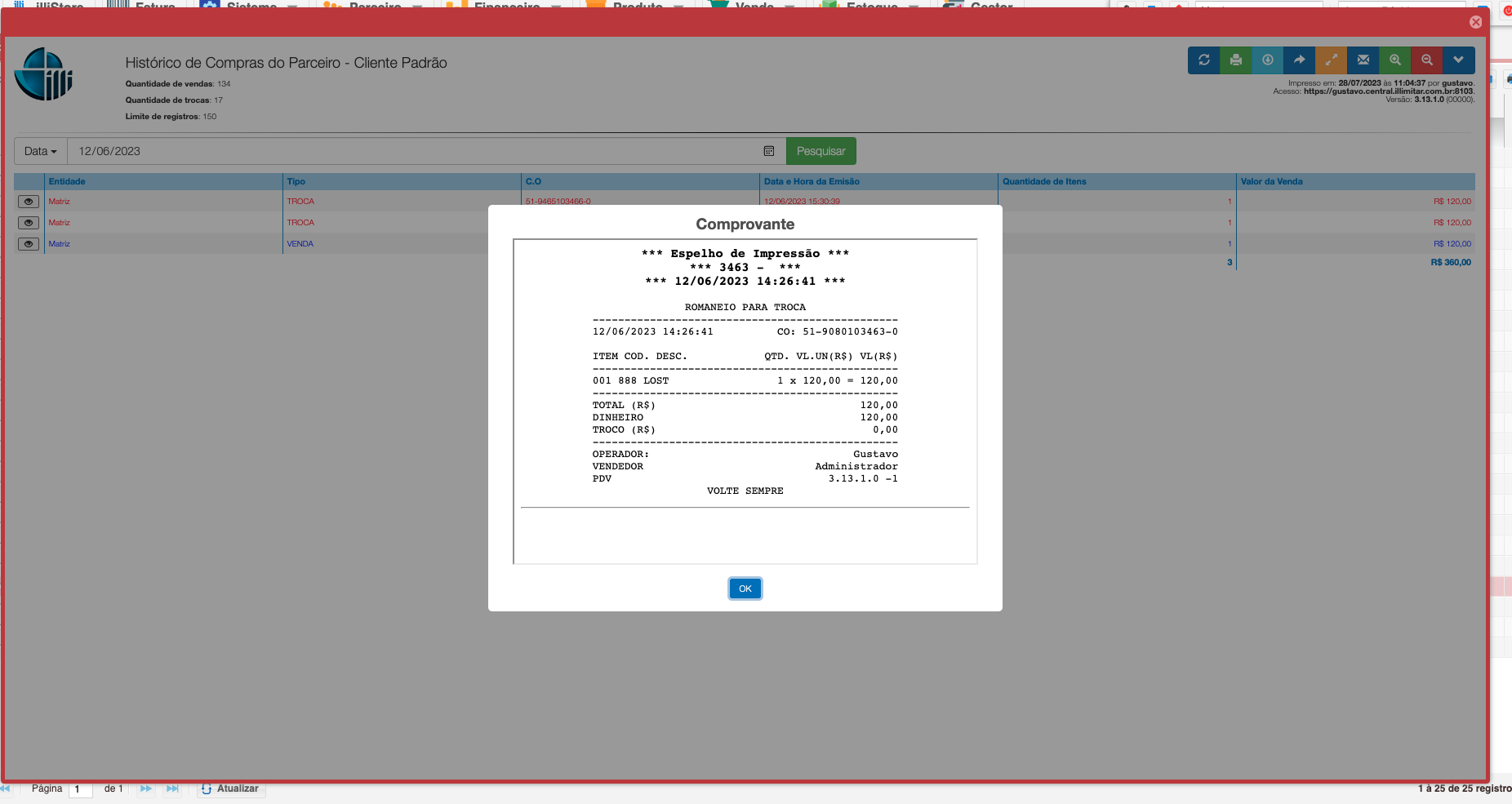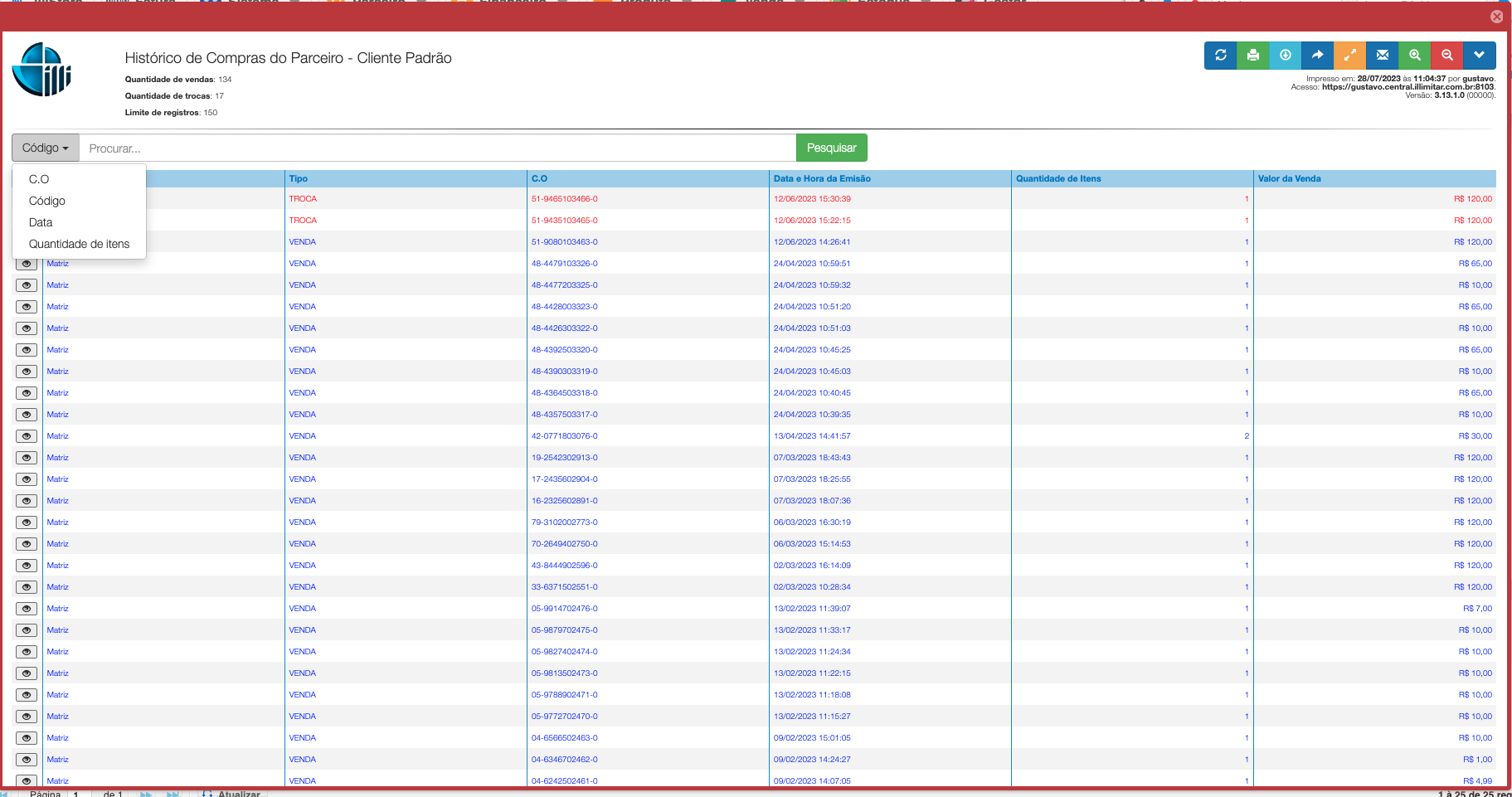 Recurso que exibe informações de compra e troca dos parceiros cadastrados no sistema, muito útil para acompanhar compras de clientes.