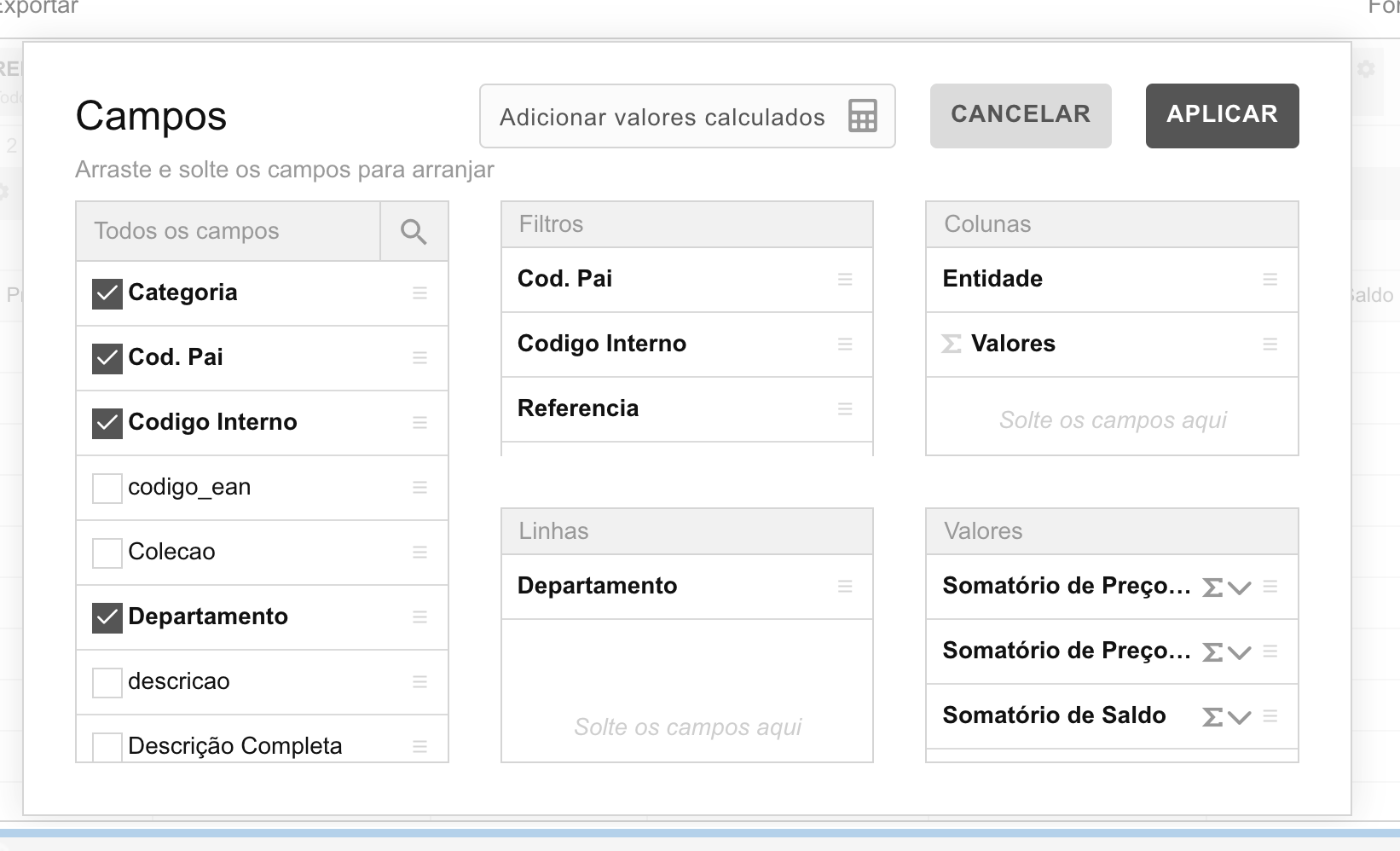 - Adicione colunas, linhas e filtros.