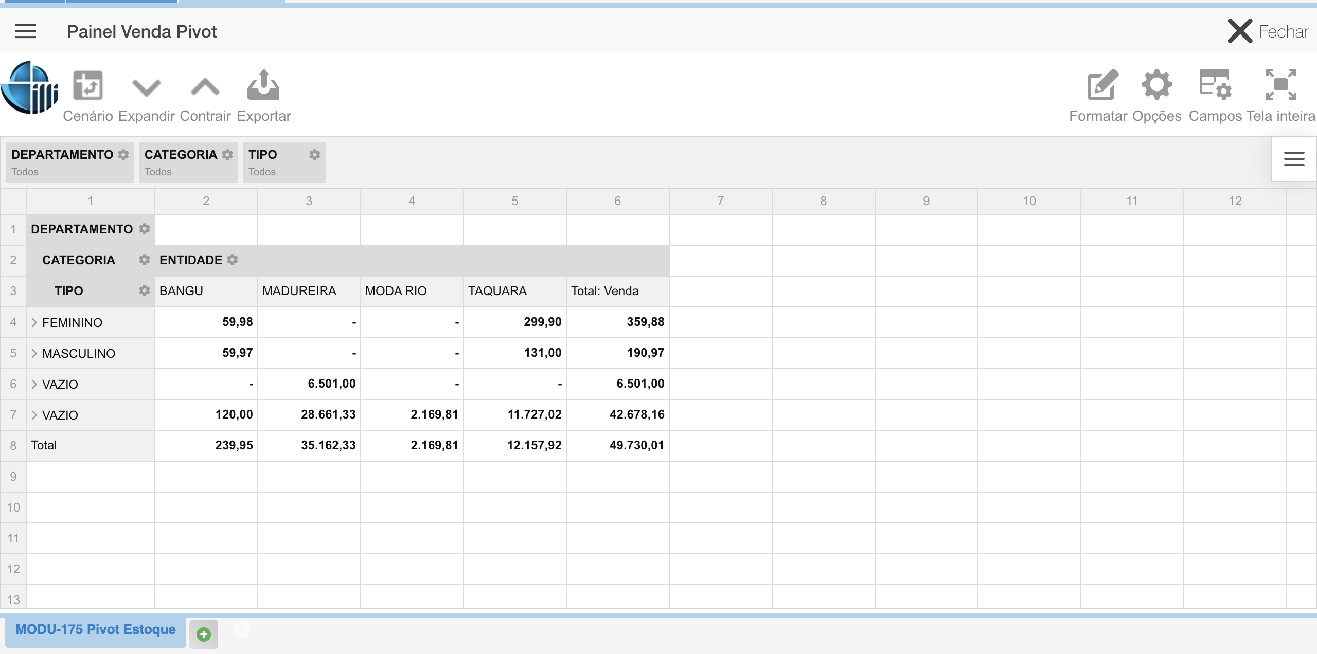 - Crie um relatório de Estoque à sua maneira.