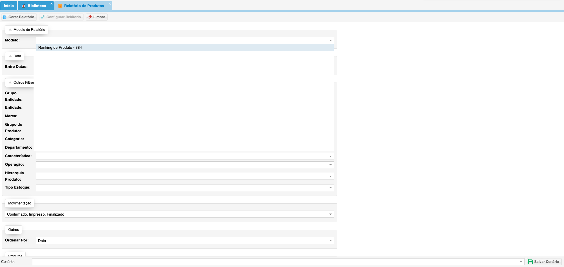 Para acessar o relatório, vá até produto -> relatório de produto e no campo e no Campo "Modelo" selecione Ranking de produtos